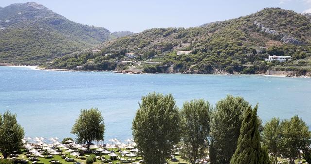 Położony na wzgórzu, tarasowo schodzi aż do pięknej zatoki z piaszczystą plażą. Jego styl łączy nowoczesną elegancję z tradycyjną grecką architekturą. Wszystkie budynki pomalowane są w pastelowych kolorach, które doskonale współgrają z błękitem nieba i morza, wprowadzając jeszcze bardziej relaksującą atmosferę. Dopełnieniem jej może być wizyta w doskonale wyposażonym centrum thalasso, oferującym zabiegi na najwyższym poziomie (za dodatkową opłatą).